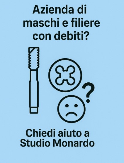 La tua azienda che produce, affila o commercializza maschi filettatori, filiere, strumenti per filettatura, maschi speciali, utensili per filettatura CNC, set filettatura e attrezzature di precisione sta affrontando una situazione grave di debiti? Fatti Aiutare da Studio Monardo