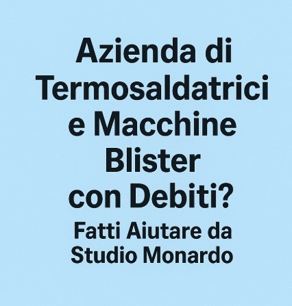 La tua azienda che produce, integra, ripara o distribuisce termosaldatrici, macchine blister, impacchettatrici, linee di confezionamento, macchine flow-pack, macchine per packaging medicale, saldatrici a caldo, sistemi di chiusura blister termoformati o ricambi e assistenza tecnica è finita in difficoltà a causa dei debiti? Fatti Aiutare da Studio Monardo