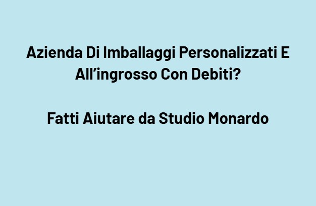La tua azienda che produce o distribuisce imballaggi personalizzati, scatole su misura, packaging industriale, imballaggi in cartone, imballaggi in legno, imballaggi in plastica, materiali protettivi, pluriball, nastri adesivi, imballaggi per e-commerce, forniture all’ingrosso o servizi di stampa e fustellatura è in difficoltà a causa dei debiti? Fatti Aiutare da Studio Monardo