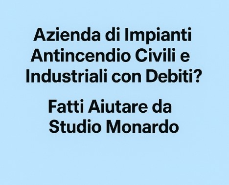 La tua azienda che progetta, installa o manutiene impianti antincendio civili e industriali, reti idranti, sprinkler, rilevazione fumi, impianti gas inerti, estintori, gruppi di pressurizzazione, stazioni di pompaggio, quadri antincendio, impianti UNI e NFPA, manutenzione periodica e servizi per capannoni, industrie, edifici pubblici e privati sta affrontando una crisi dovuta ai debiti? Fatti Aiutare da Studio Monardo