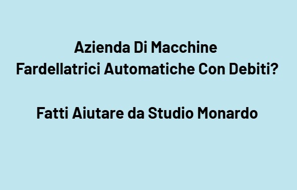 La tua azienda che produce, integra, installa o manutiene macchine fardellatrici automatiche, fardellatrici termo-retraibili, confezionatrici industriali, sistemi di imballaggio automatizzati, linee di fine linea, nastri trasportatori, saldatrici, sistemi di avvolgimento o macchine per packaging alimentare e industriale è in difficoltà per colpa dei debiti? Fatti Aiutare da Studio Monardo