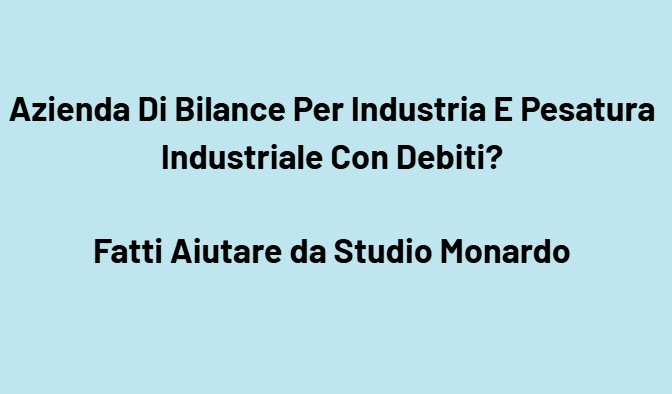 La tua azienda che produce, installa, ripara o distribuisce bilance industriali, celle di carico, piattaforme di pesatura, bilance per magazzino, pese a ponte, indicatori di peso, sistemi di pesatura dinamica, bilance da banco, bilance da pavimento, strumentazione metrologica, software di pesatura e soluzioni per logistica, produzione, agricoltura e industria è oggi schiacciata dai debiti? Fatti Aiutare da Studio Monardo