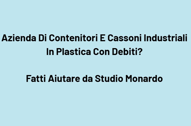 La tua azienda che produce, assembla, ricicla o distribuisce contenitori industriali in plastica, cassoni pallet, vasche e cassoni sovrapponibili, contenitori per logistica, casse pieghevoli, contenitori alimentari certificati, box per magazzino, contenitori per industria, agricoltura e GDO è oggi in difficoltà a causa dei debiti? Fatti Aiutare da Studio Monardo