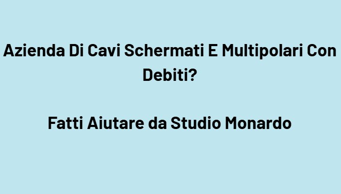 La tua azienda che produce, assembla o distribuisce cavi schermati, cavi multipolari, cavi per automazione, cavi segnale, cavi dati, cavi per quadri elettrici, cavi per robotica, cavi speciali, bobine e cablaggi tecnici si trova in difficoltà a causa dei debiti? Fatti Aiutare da Studio Monardo