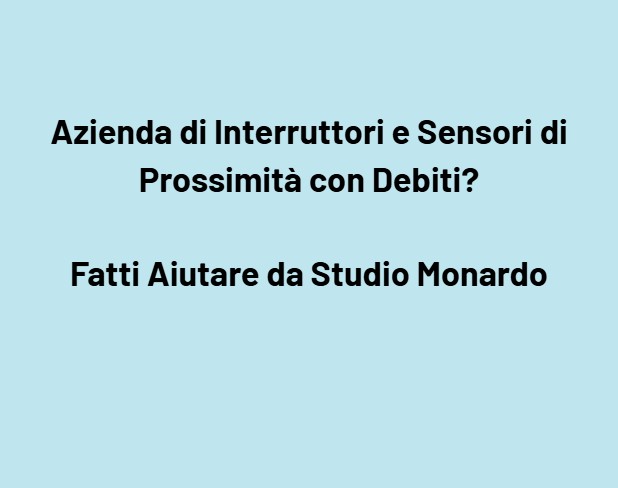 La tua azienda che produce, assembla, importa o distribuisce interruttori di prossimità, sensori induttivi, sensori capacitivi, sensori magnetici, interruttori di finecorsa, sensori ottici, fotocellule, switch industriali, cavi e connettori, componenti per automazione e macchine industriali si trova oggi in difficoltà a causa dei debiti? Fatti Aiutare da Studio Monardo