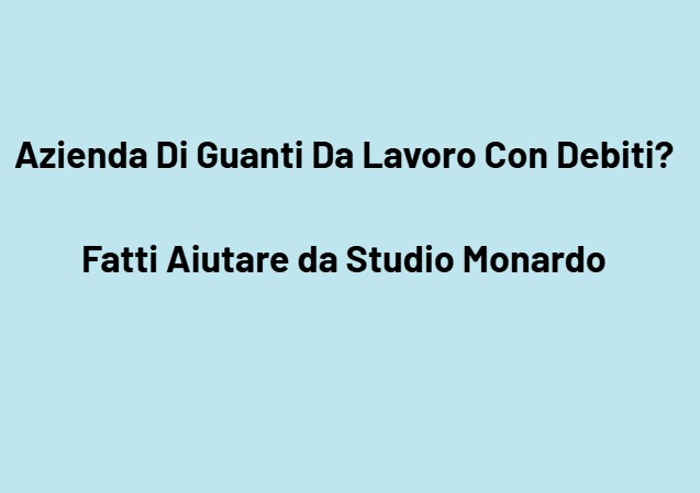 La tua azienda che produce, importa o distribuisce guanti da lavoro, guanti antitaglio, guanti in nitrile, guanti in pelle, guanti per saldatura, guanti termici, guanti ESD, guanti monouso, DPI mano certificati EN388/EN374, guanti per industria, cantieri e officine si trova oggi in difficoltà a causa dei debiti? Fatti Aiutare da Studio Monardo