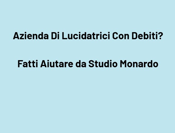 La tua azienda che produce, vende, ripara o noleggia lucidatrici industriali, macchine per finitura superfici, levigatrici, spazzolatrici, macchine per lucidatura metalli, impianti di finitura automatizzati, paste e accessori per lucidatura, macchine CNC per finitura o che offre servizi di lucidatura conto terzi si trova oggi in difficoltà a causa dei debiti? Fatti Aiutare da Studio Monardo