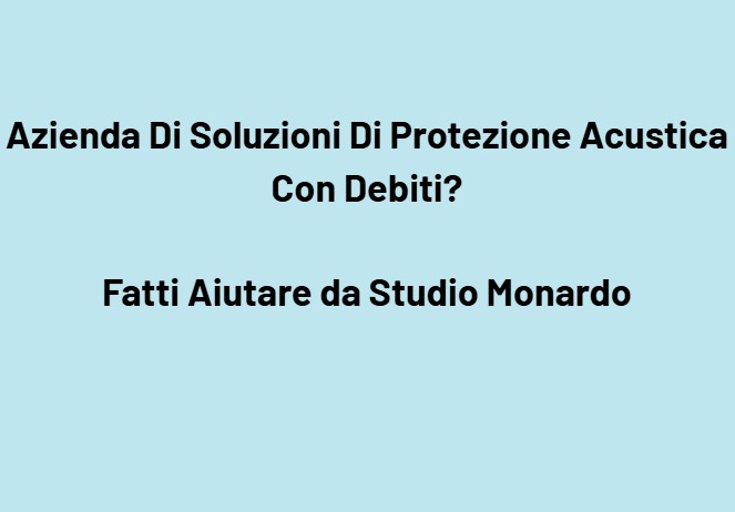 La tua azienda che progetta, produce, installa o distribuisce soluzioni di protezione acustica, pannelli fonoassorbenti, barriere antirumore, cabine insonorizzate, trattamenti acustici per capannoni, materiali fonoisolanti, schermi acustici industriali, trappole acustiche, pannelli in lana minerale, poliuretano, melammina o gomma, consulenze fonometriche e sistemi per ridurre il rumore in ambienti industriali e civili, si trova oggi schiacciata dai debiti? Fatti Aiutare da Studio Monardo
