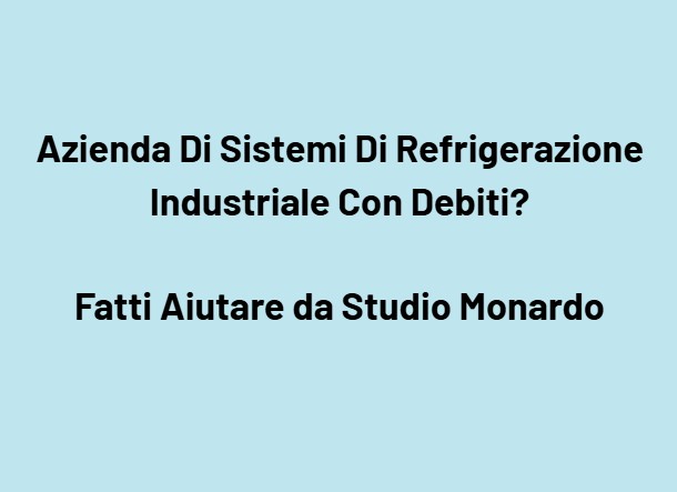 La tua azienda che progetta, installa, produce o manutiene sistemi di refrigerazione industriale, chiller, impianti frigoriferi, centrali frigorifere, celle frigo, evaporatori, condensatori, compressori, unità di raffreddamento ad acqua/aria, impianti per process cooling, refrigerazione alimentare e industriale, o che fornisce assistenza e retrofit si trova oggi in difficoltà a causa dei debiti? Fatti Aiutare Con Studio Monardo