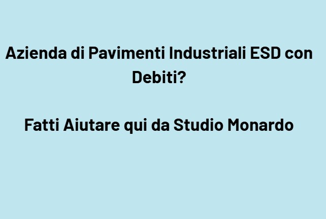 La tua azienda che progetta, produce, installa o distribuisce pavimenti industriali ESD, pavimentazioni antistatiche, pavimenti conduttivi, rivestimenti per camere bianche, pavimenti per elettronica e laboratori, resine ESD, vinilici epossidici conduttivi, sistemi di messa a terra e soluzioni per industrie hi-tech, farmaceutiche, elettronica, automotive e logistiche si trova oggi in difficoltà a causa dei debiti? Fatti Aiutare da Studio Monardo