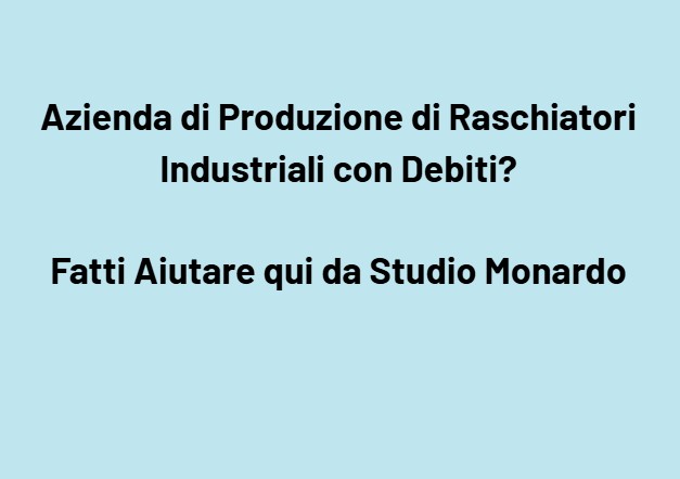 La tua azienda che produce raschiatori industriali, lame raschianti, raschiatori per nastri trasportatori, raschiatori per miscelatori, lame in poliuretano, raschiatori in acciaio, componenti per impianti di trasporto materiali, spare parts per conveyor belt, oppure fornisce manutenzione, ricambi e sistemi di pulizia industriale, oggi è schiacciata dai debiti? Fatti Aiutare da Studio Monardo