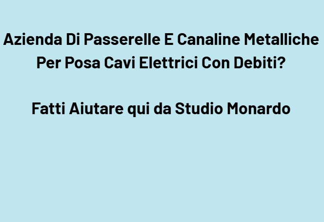 La tua azienda che produce, assembla, importa o distribuisce passerelle metalliche, canaline portacavi, canalette zincate, grigliati portacavo, supporti e staffe, curve, giunzioni, raccordi, sistemi per impianti elettrici industriali e civili, fornendo elettricisti, installatori, contractor, impiantisti e industrie, oggi è schiacciata dai debiti? Fatti Aiutare da Studio Monardo