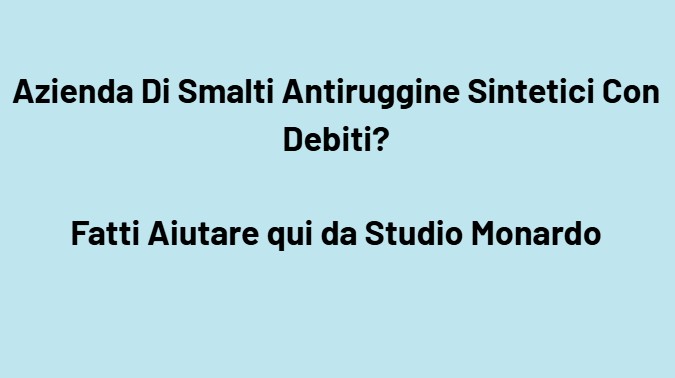 La tua azienda che produce, miscela, importa o distribuisce smalti antiruggine sintetici, vernici protettive, primer anticorrosivi, fondi sintetici, smalti industriali, prodotti anticorrosione per metalli, vernici per carpenteria, cancelli, macchine agricole e strutture metalliche, oggi è schiacciata dai debiti?
