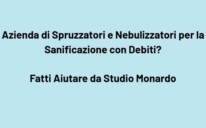 La tua azienda che produce, importa, distribuisce o manutiene spruzzatori professionali, nebulizzatori elettrici o a batteria, atomizzatori, sistemi ULV, pompe, ugelli, serbatoi, ricambi e soluzioni per la sanificazione industriale e civile, oggi è schiacciata dai debiti? Fatti Aiutare da Studio Monardo