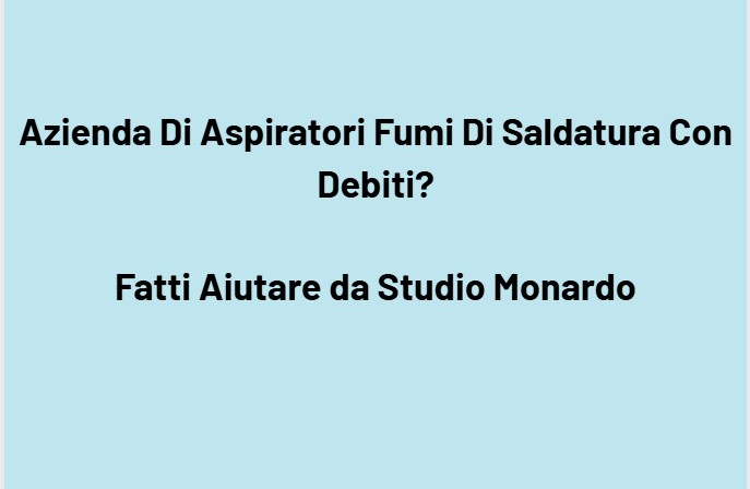 La tua azienda che produce, importa, installa o manutiene aspiratori fumi di saldatura, bracci aspiranti, filtri a cartucce, impianti centralizzati di aspirazione, depuratori industriali, torce aspiranti, banchi aspiranti e sistemi di abbattimento per fumi e polveri, oggi è schiacciata dai debiti? Fatti Aiutare da Studio Monardo