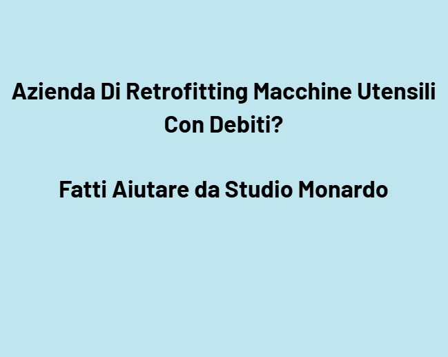Un’azienda di retrofitting di macchine utensili è una tipologia di impresa manifatturiera che interviene su impianti industriali esistenti per migliorare prestazioni e sicurezza. Questa attività richiede spesso investimenti in macchinari, tecnologie e ricerca, e viene finanziata con prestiti bancari o leasing. In situazioni di crisi economica, calo di commesse o aumento dei costi di gestione, un’azienda del genere può accumulare debiti verso fornitori, banche, fisco e dipendenti. Il mancato risanamento tempestivo della posizione debitoria può esporre la società al rischio di procedure concorsuali (concordato preventivo o liquidazione giudiziale) e responsabilità personali degli amministratori.