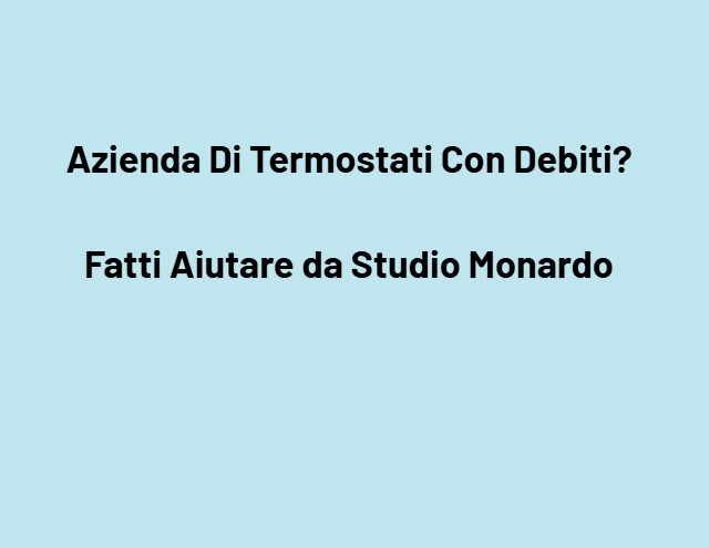 La tua azienda che produce, progetta, importa o distribuisce termostati, sensori di temperatura, controllori elettronici, termoregolatori, sonde NTC/PT100, termostati industriali, componenti per HVAC, refrigerazione, riscaldamento e automazione, oggi è schiacciata dai debiti? Fatti Aiutare da Studio Monardo