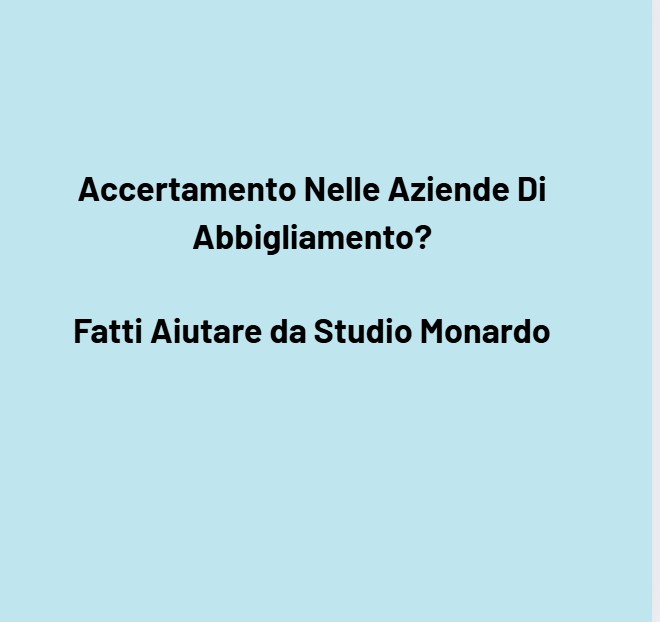 - analisi immediata dell’accertamento nel settore abbigliamento,