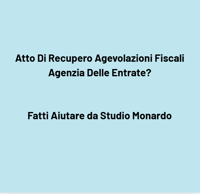 Se hai ricevuto un atto di recupero o temi di essere destinatario di un recupero per agevolazioni fiscali, non perdere tempo. L’Avv. Giuseppe Angelo Monardo e il suo staff multidisciplinare sono pronti ad assisterti. Grazie alla loro competenza in diritto tributario, bancario e nella gestione della crisi sanno valutare la tua posizione, proporre le difese più efficaci e, se necessario, attivare strumenti come la rottamazione, il piano del consumatore o la composizione negoziata. Contatta lo studio per una consulenza personalizzata e fermare sul nascere sanzioni, pignoramenti e ipoteche.