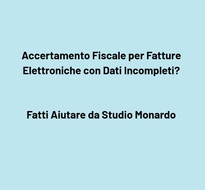 Il Fisco ti contesta fatture elettroniche con dati incompleti o errati e utilizza l’irregolarità per recuperare imposte, sanzioni e interessi? Sai che molti accertamenti fondati su dati incompleti in fattura sono formali, tecnici e spesso difendibili? Fatti Aiutare da Studio Monardo