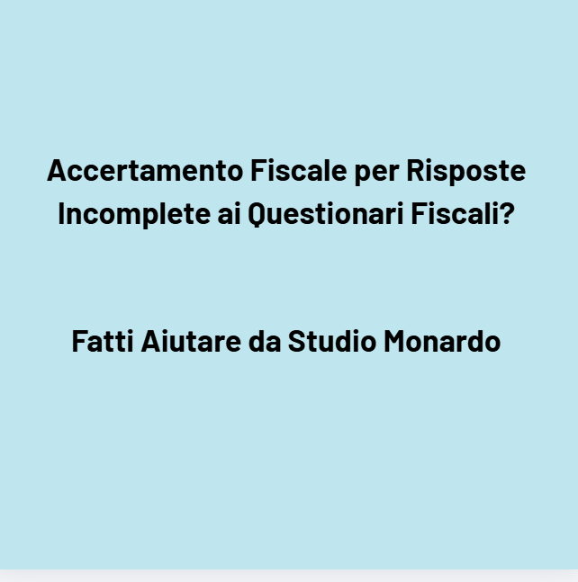 Il Fisco ti contesta risposte incomplete ai questionari fiscali e utilizza le lacune informative per recuperare imposte, sanzioni e interessi? Sai che molti accertamenti fondati su risposte incomplete sono procedurali, sproporzionati e spesso difendibili? Fatti Aiutare da Studio Monardo