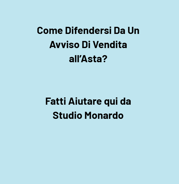 📞 Contatta subito qui di seguito l’Avv. Giuseppe Angelo Monardo per una consulenza personalizzata. Lui e il suo staff di avvocati e commercialisti sapranno analizzare la tua situazione specifica e difenderti con strategie legali concrete e tempestive. Che si tratti di presentare un’istanza urgente in tribunale, di intavolare una trattativa con la banca, o di costruire un piano di rientro protetto dal giudice, la squadra dell’Avv. Monardo metterà in campo tutta la propria esperienza per proteggere i tuoi beni e i tuoi diritti. Agisci ora: la legge offre gli strumenti, i professionisti giusti sanno come utilizzarli al meglio – insieme, potete trasformare un avviso di vendita all’asta da condanna annunciata a un problema risolvibile con successo. Non sei solo in questa battaglia: con l’assistenza qualificata giusta, puoi voltare pagina e riprendere il controllo del tuo futuro economico. Contatta subito l’Avv. Monardo e il suo team per iniziare il percorso di difesa e rinascita finanziaria!